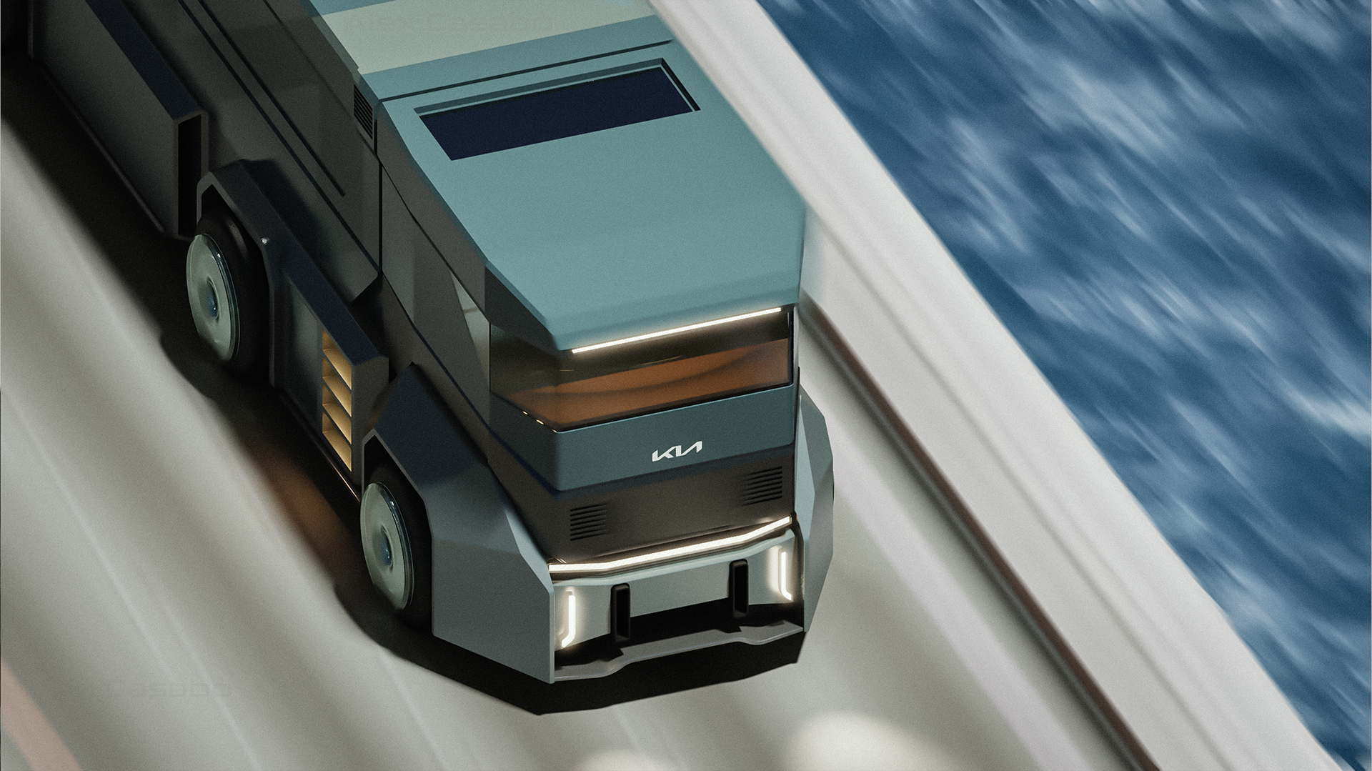 This KIA cargo truck concept reimagines the transport icon as a sculptural machine, where clean geometry meets silent power. Designed for a near future of electric logistics, it blends brutalist strength with quiet elegance, standing as a moving monolith of progress.